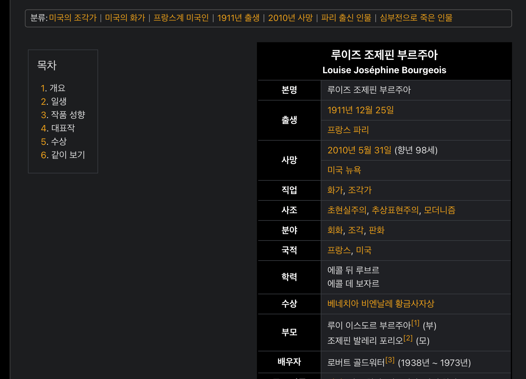 마망이라는 유명한 거대 거미 조각가인 루이즈 부르주아의 작품 모음전을 호암미술관에서 문화가 있는 날 덕분에 반 값으로 보았다.